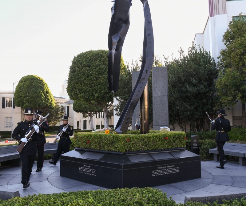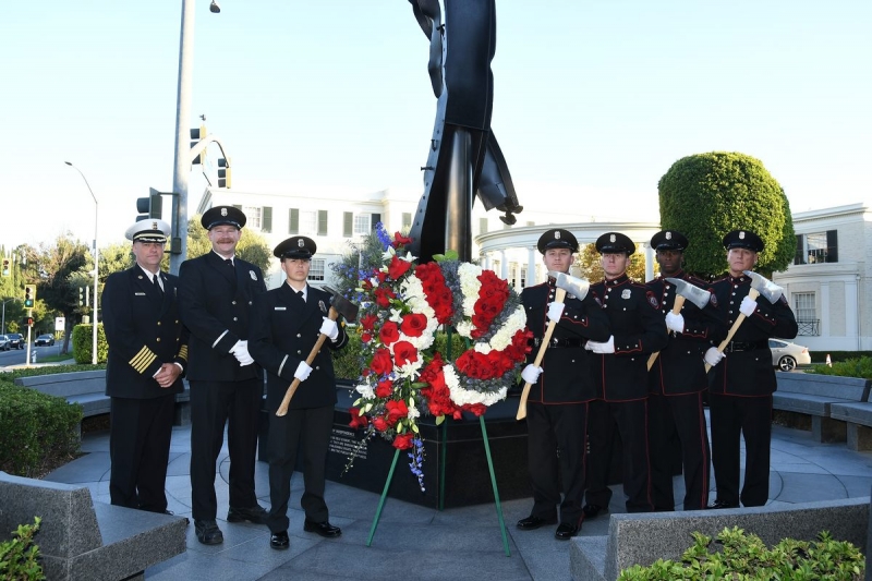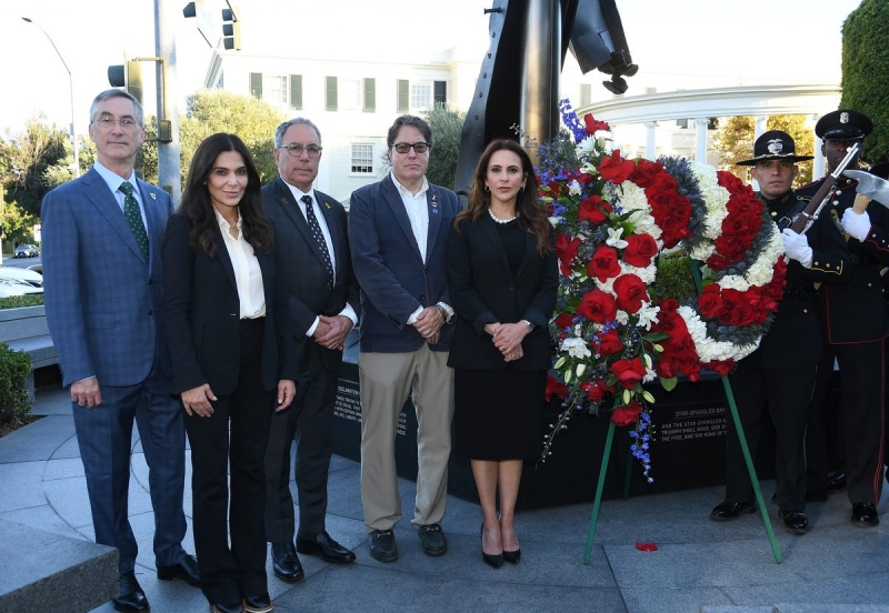 The Beverly Hills 9/11 Memorial Garden provides a sanctuary for those who wish to honor, sit and reflect, contemplate and remember the events of that day. In addition to the imposing Twin Towers floor beam erected at the center of the site, various vignettes have been incorporated to represent the locations of the three plane crash sites – the World Trade Center, the Pentagon and the field in Shanksville, Pennsylvania.