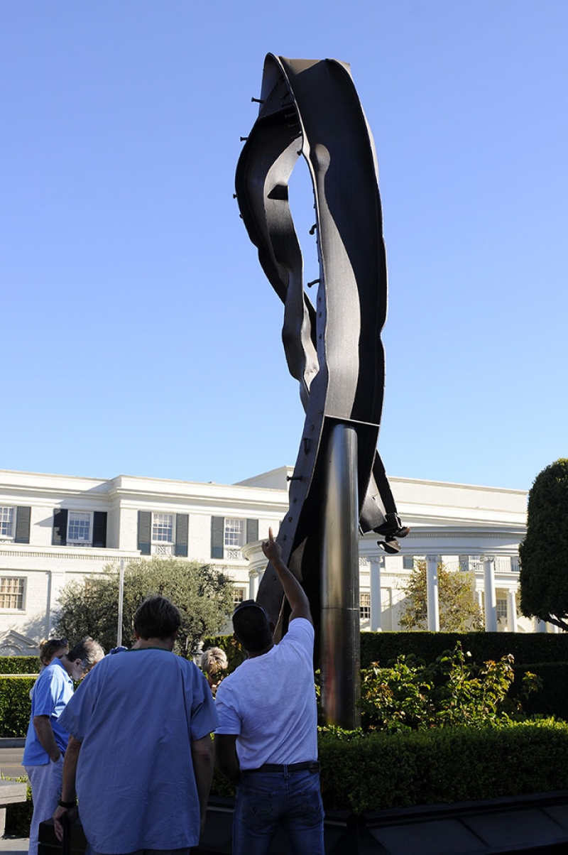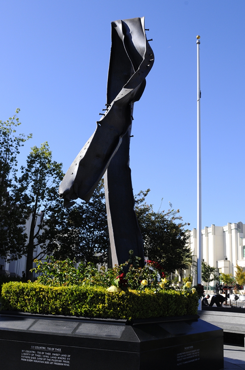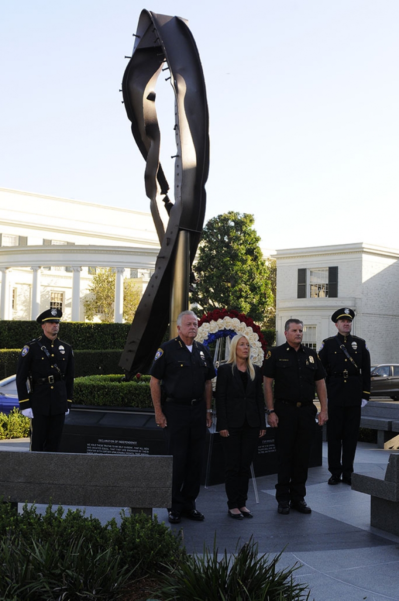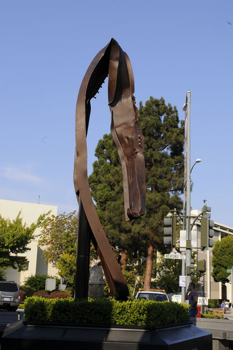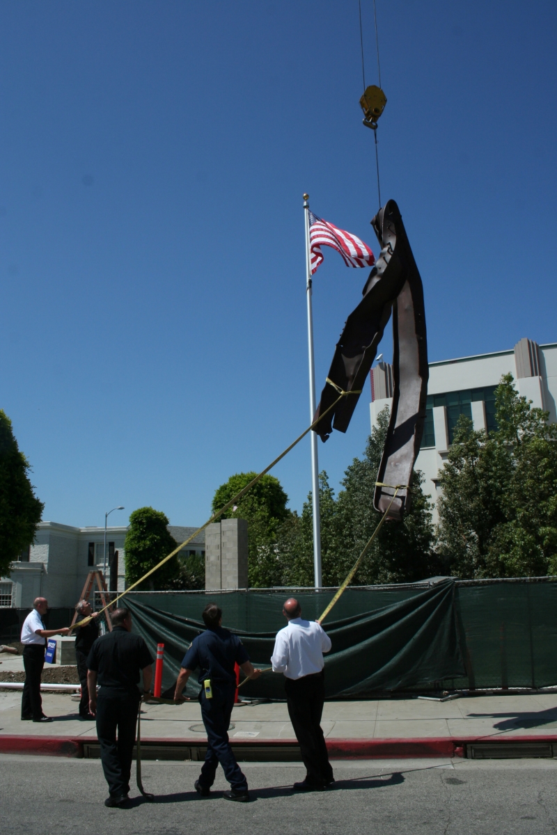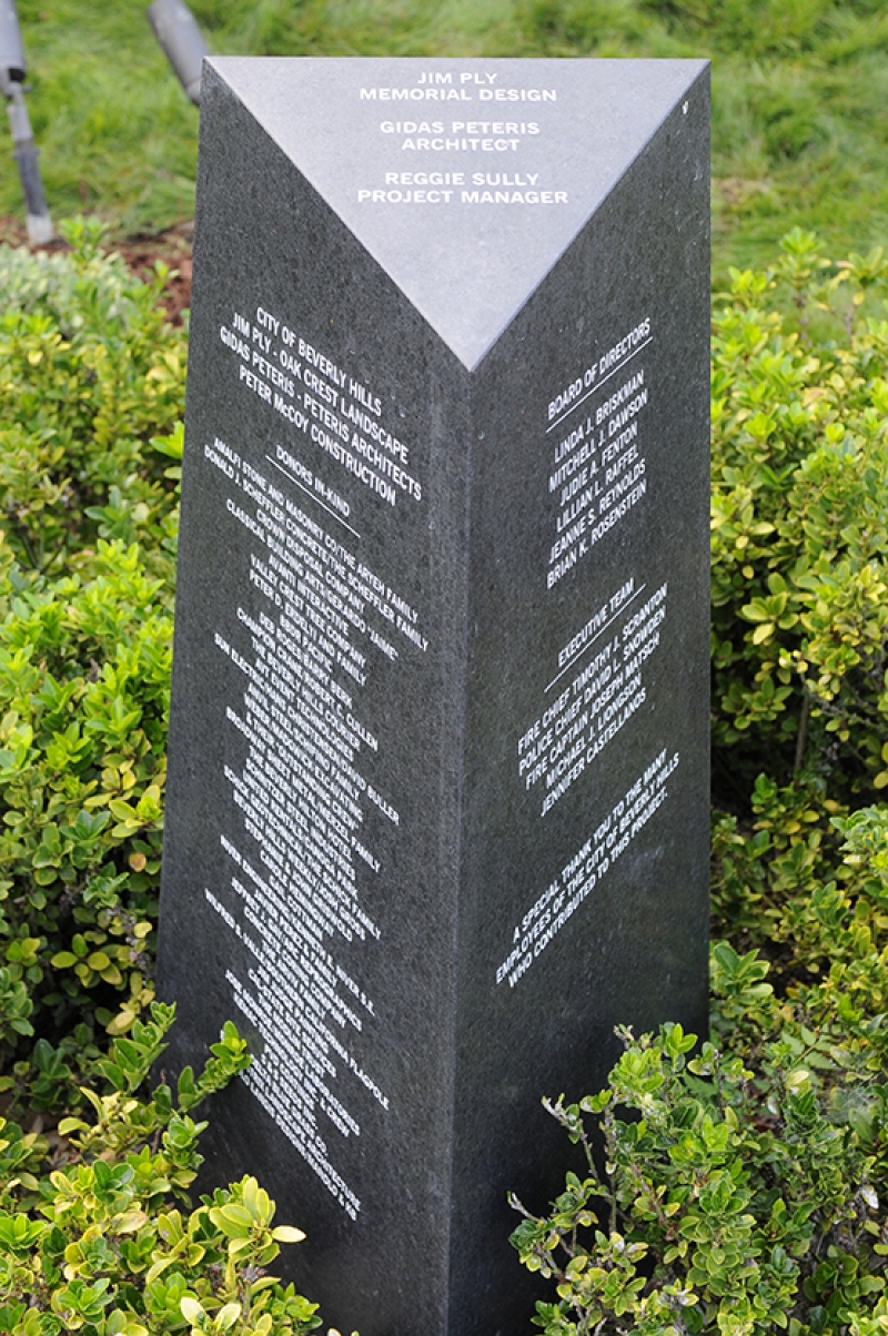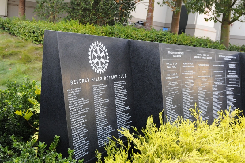 The Beverly Hills 9/11 Memorial Garden provides a sanctuary for those who wish to honor, sit and reflect, contemplate and remember the events of that day. In addition to the imposing Twin Towers floor beam erected at the center of the site, various vignettes have been incorporated to represent the locations of the three plane crash sites – the World Trade Center, the Pentagon and the field in Shanksville, Pennsylvania.