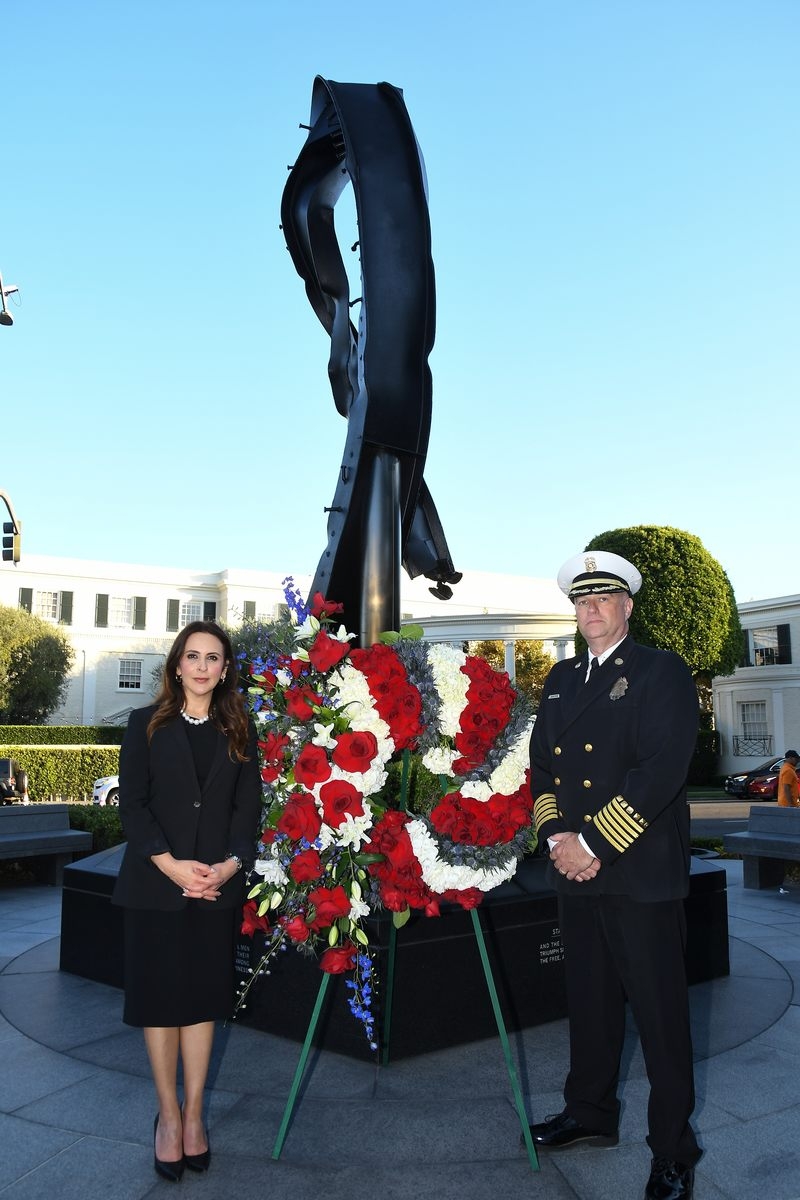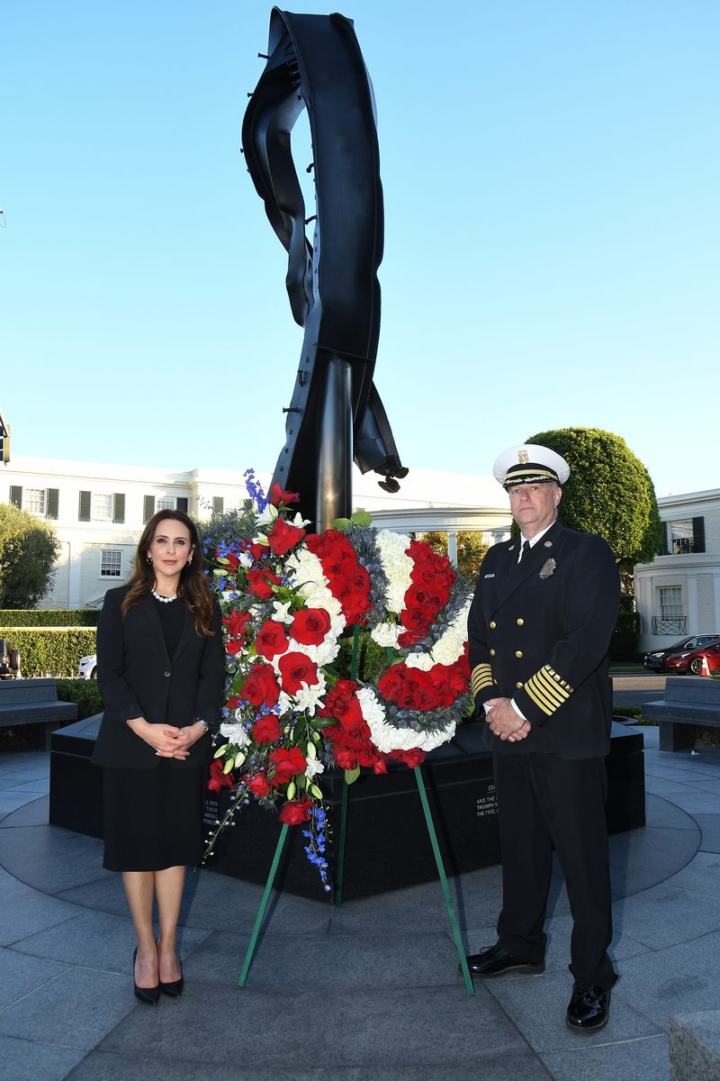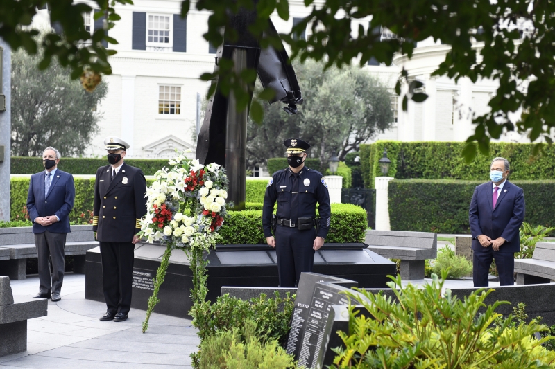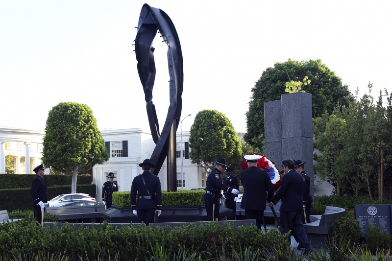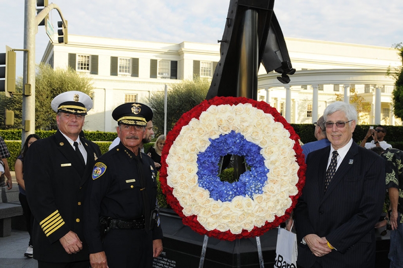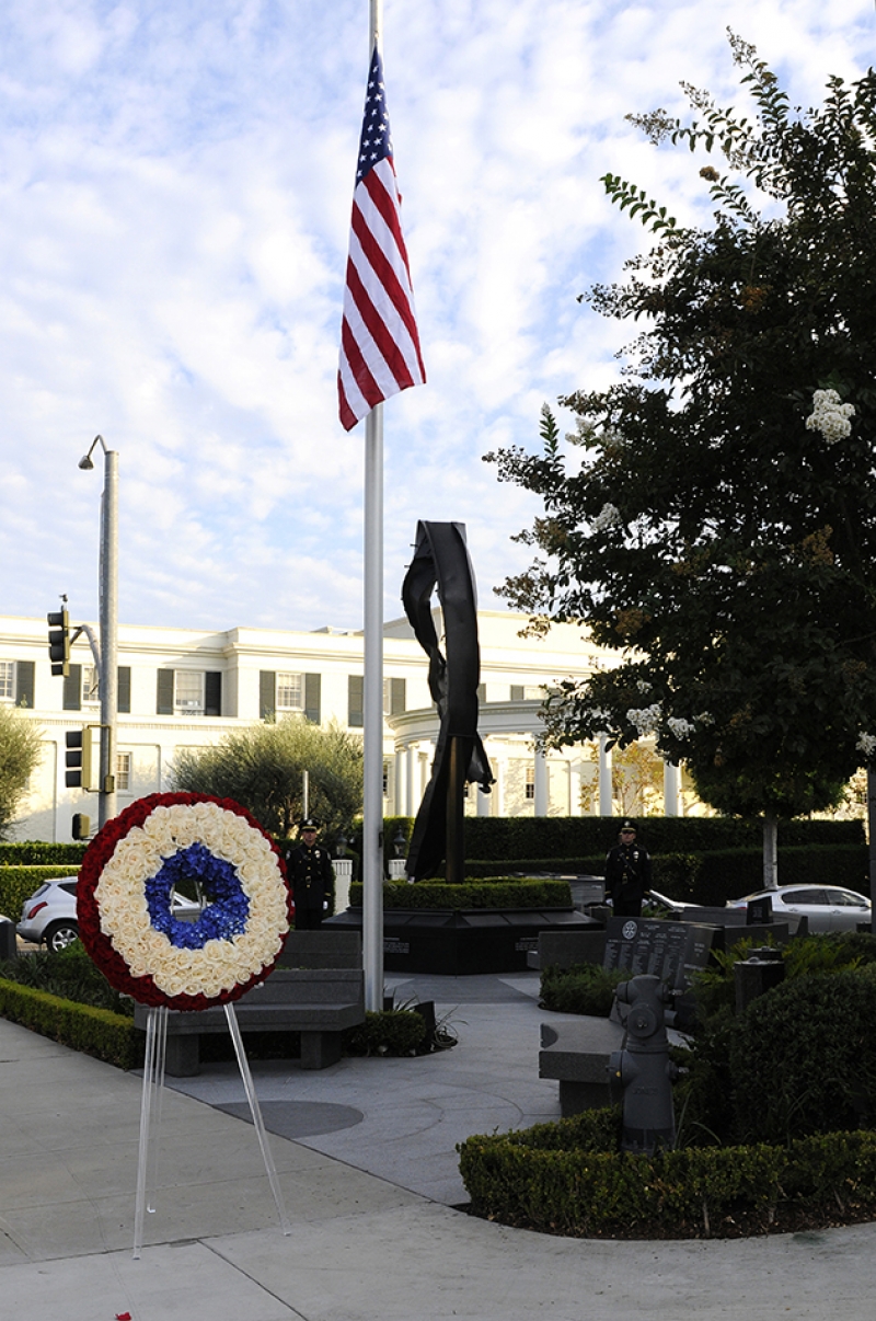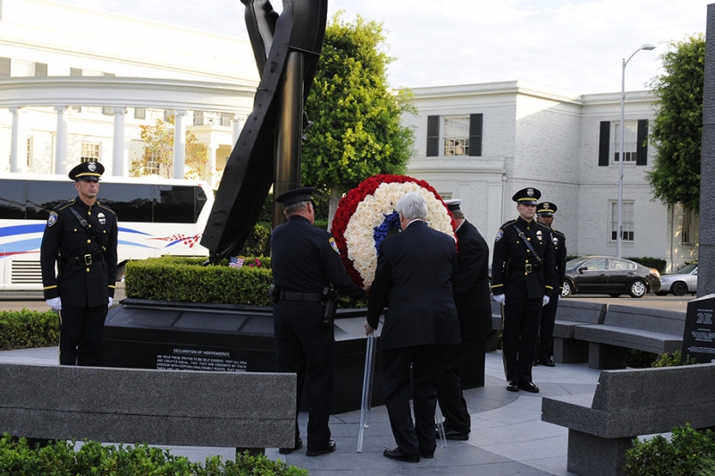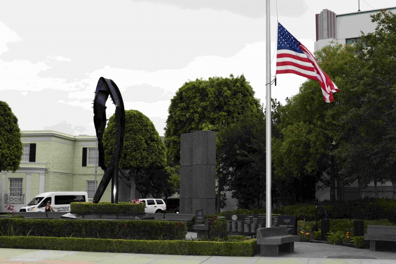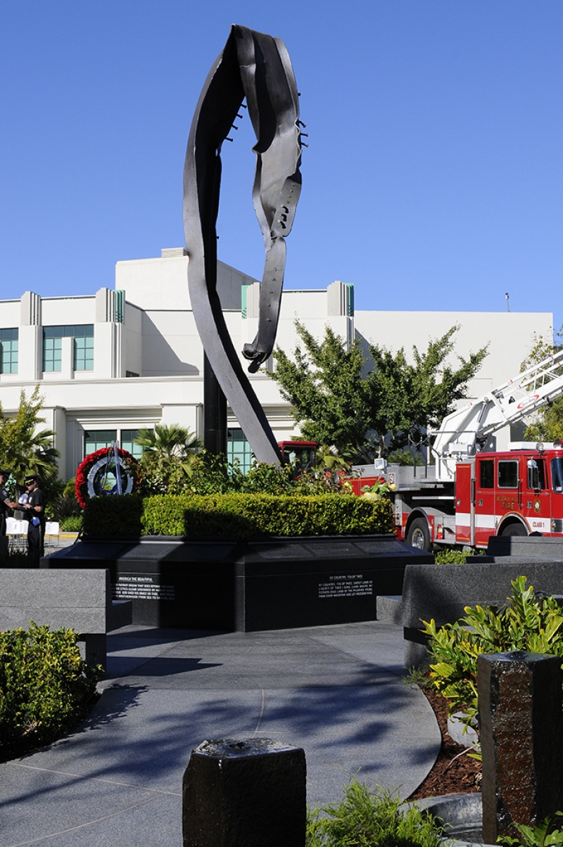 The Beverly Hills 9/11 Memorial Garden provides a sanctuary for those who wish to honor, sit and reflect, contemplate and remember the events of that day. In addition to the imposing Twin Towers floor beam erected at the center of the site, various vignettes have been incorporated to represent the locations of the three plane crash sites – the World Trade Center, the Pentagon and the field in Shanksville, Pennsylvania.