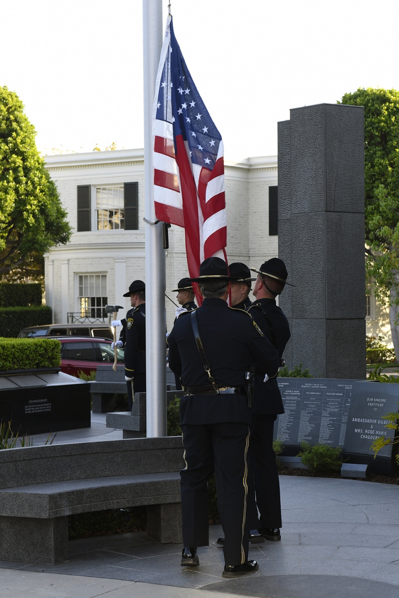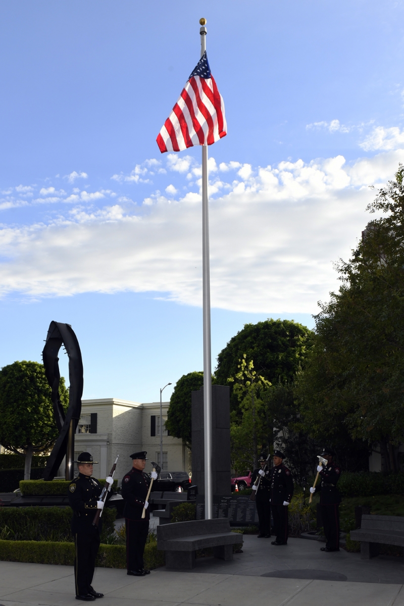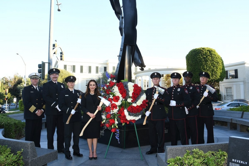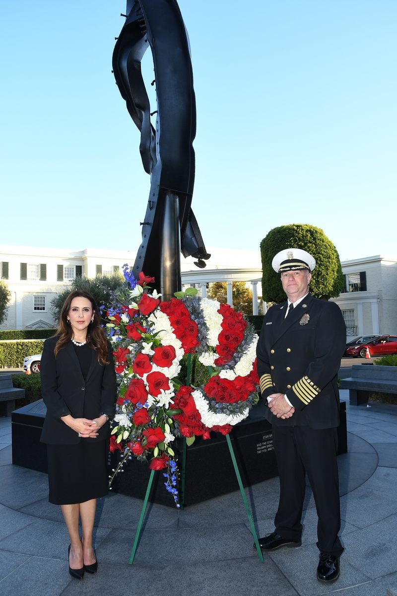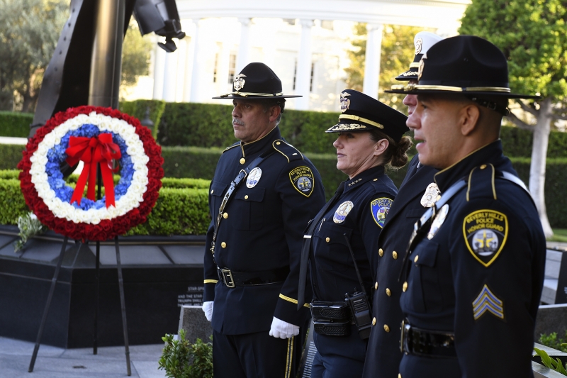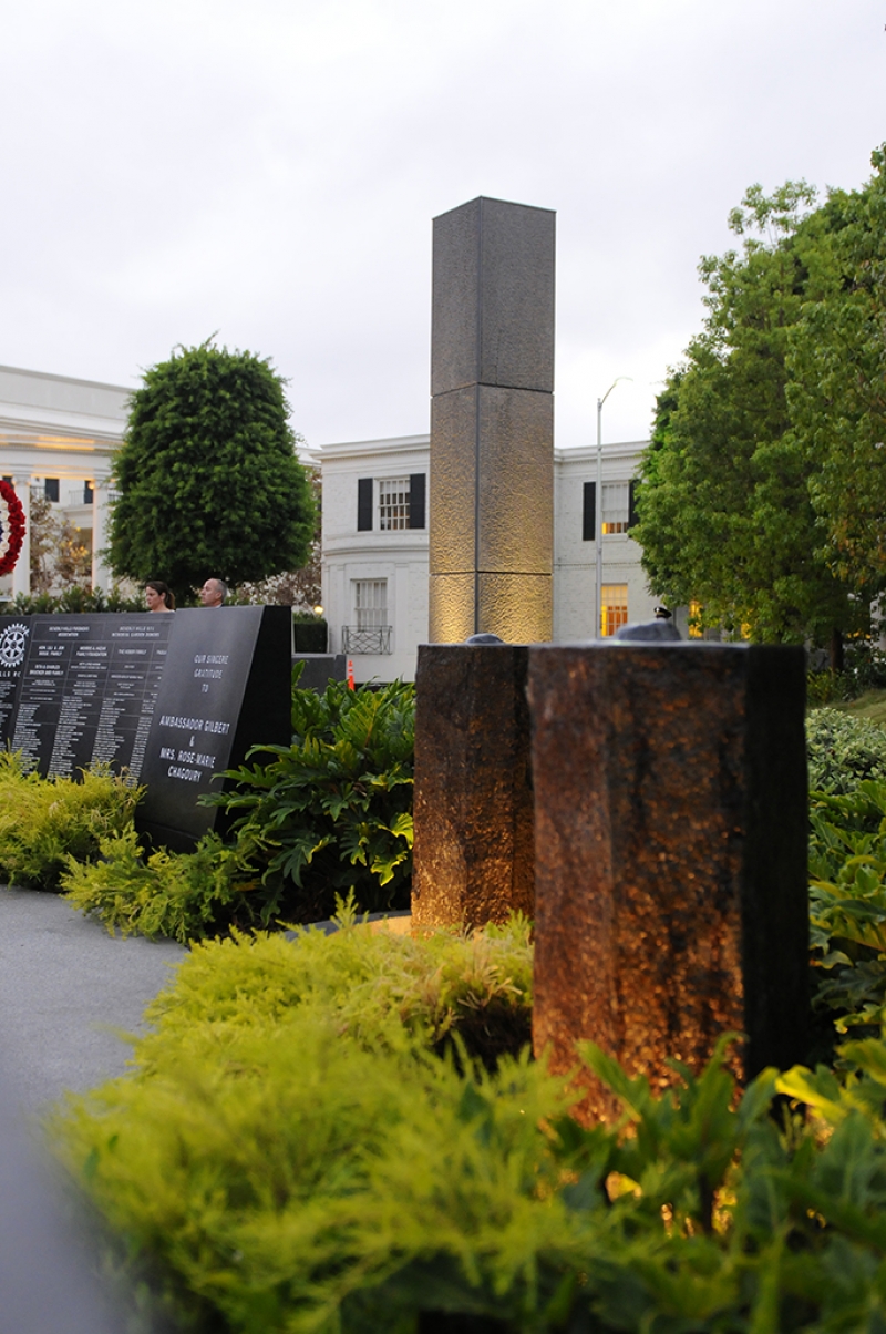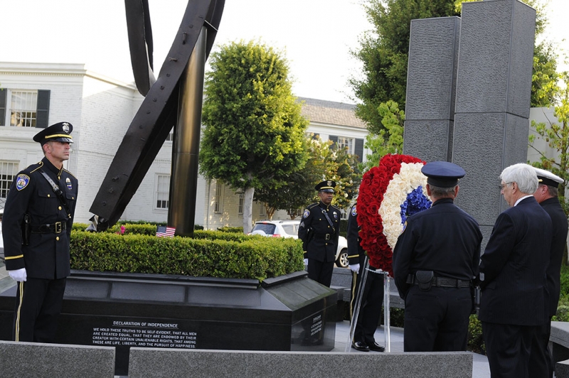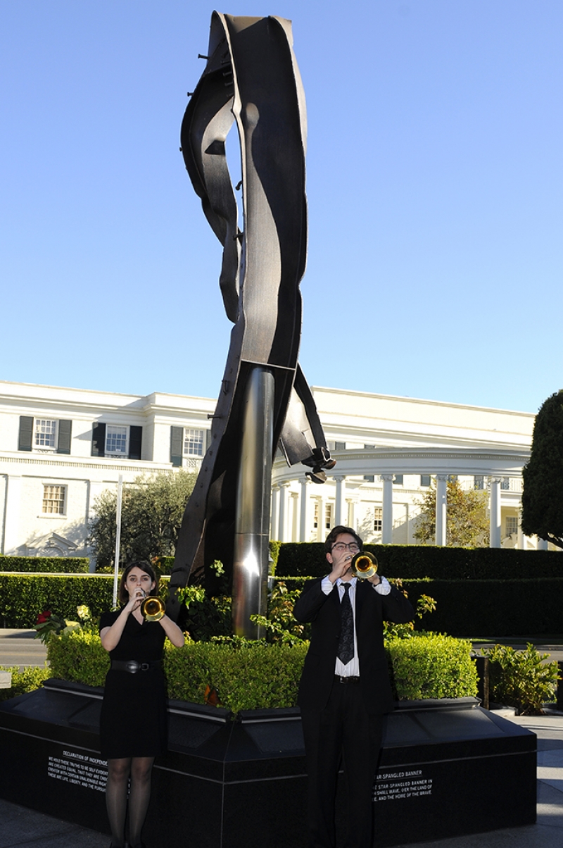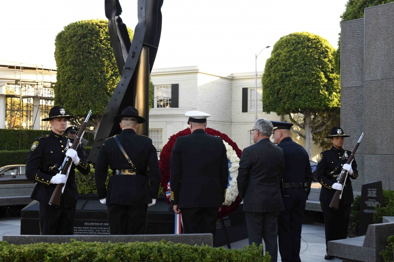 The Beverly Hills 9/11 Memorial Garden provides a sanctuary for those who wish to honor, sit and reflect, contemplate and remember the events of that day. In addition to the imposing Twin Towers floor beam erected at the center of the site, various vignettes have been incorporated to represent the locations of the three plane crash sites – the World Trade Center, the Pentagon and the field in Shanksville, Pennsylvania.