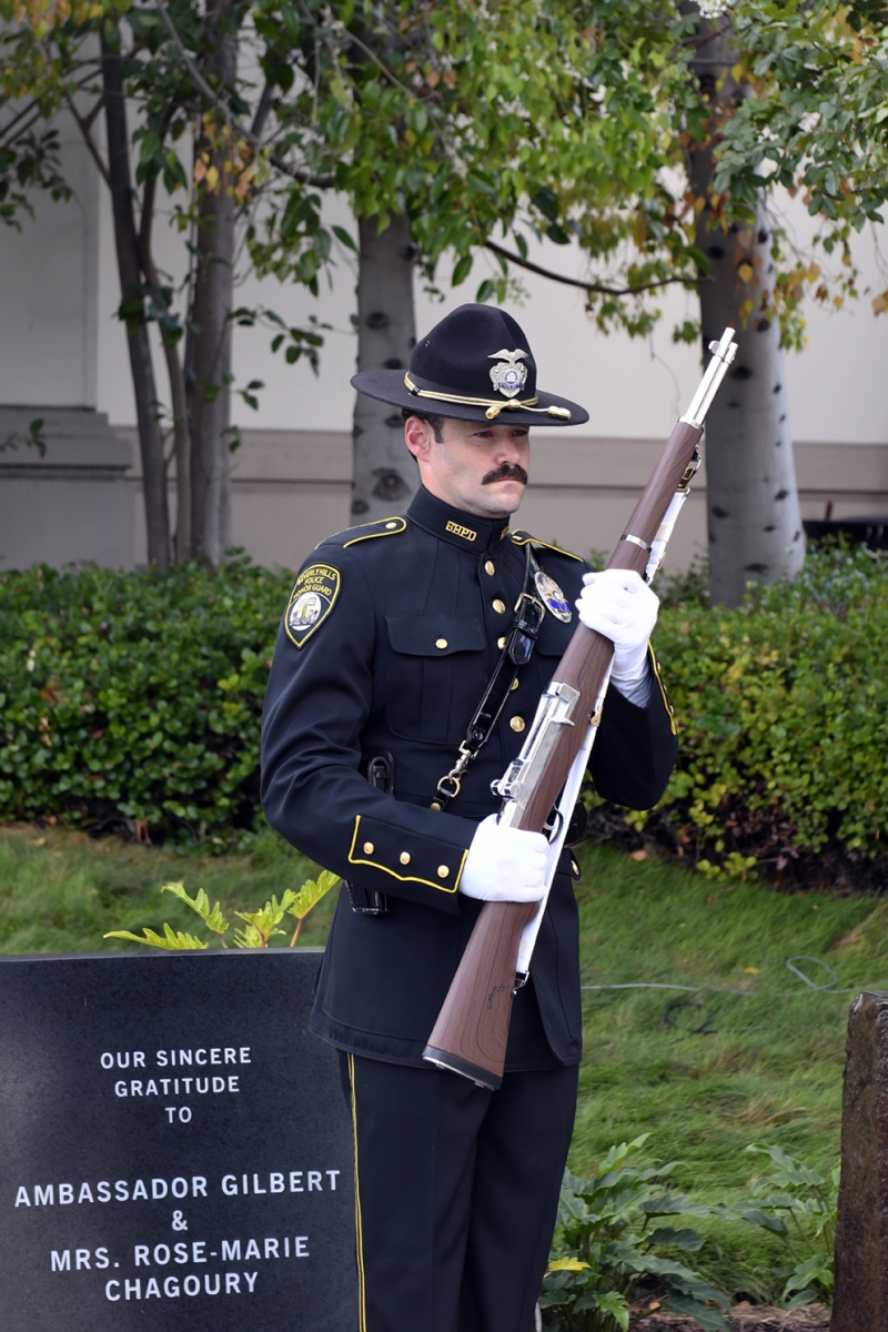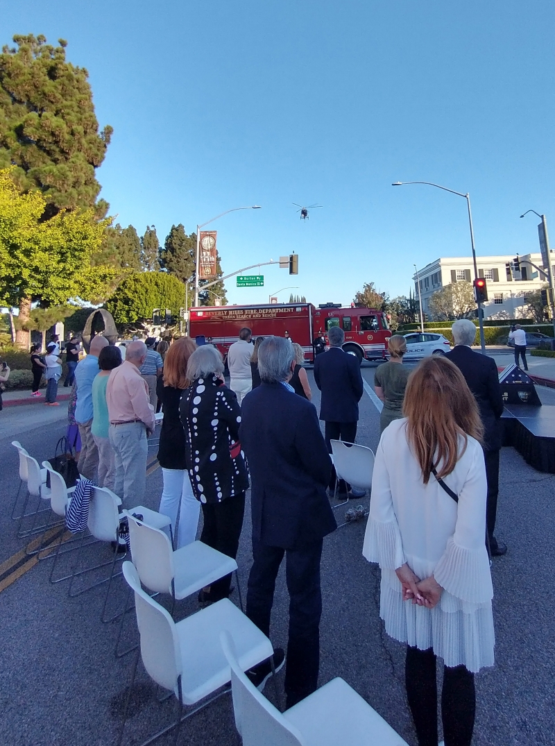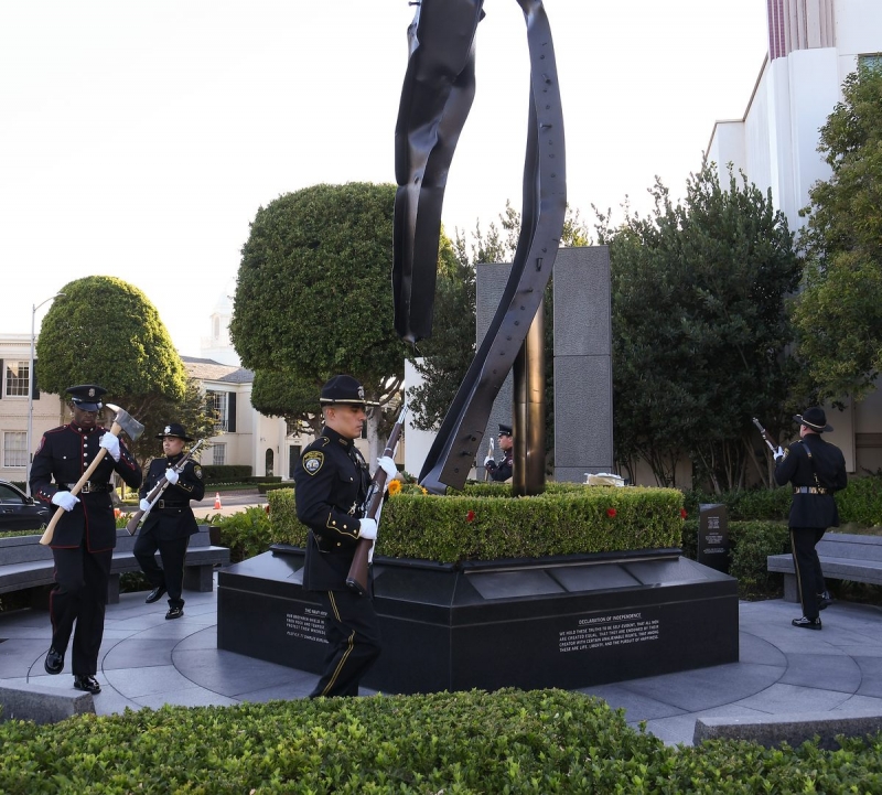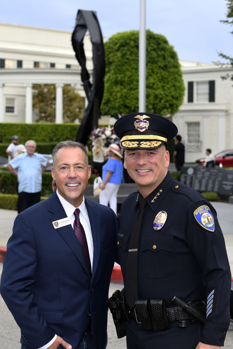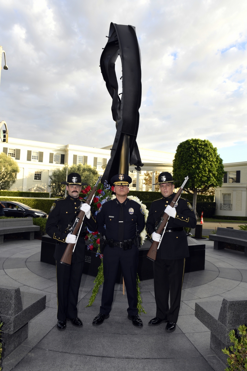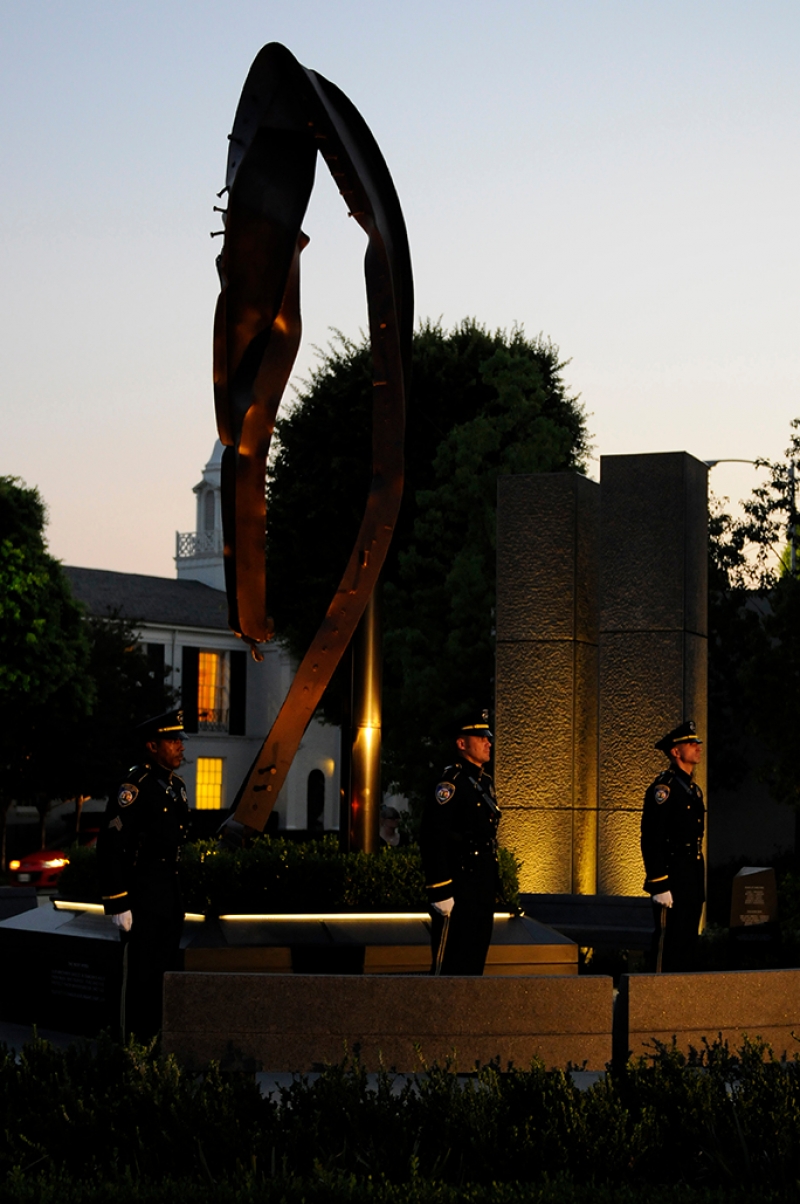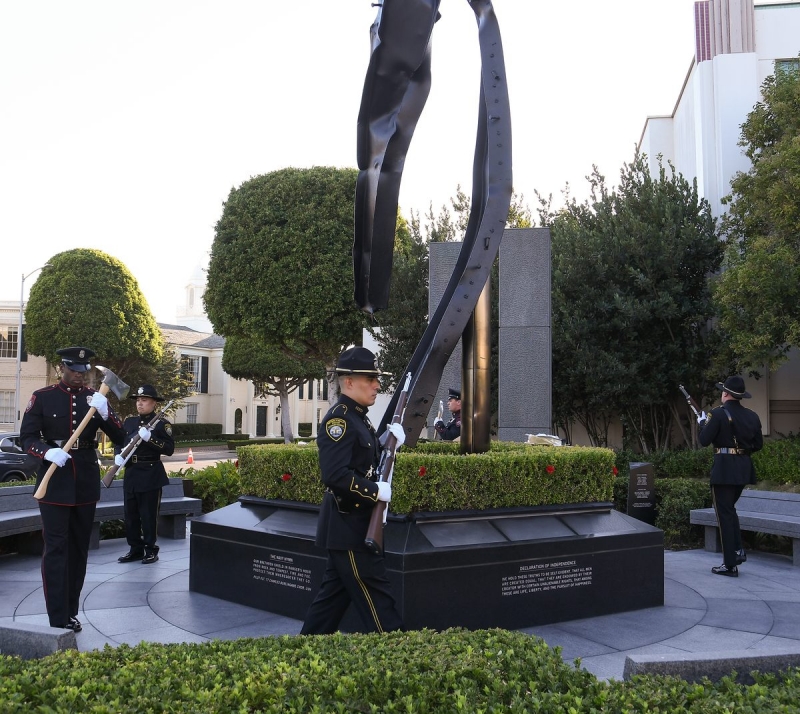 The Beverly Hills 9/11 Memorial Garden provides a sanctuary for those who wish to honor, sit and reflect, contemplate and remember the events of that day. In addition to the imposing Twin Towers floor beam erected at the center of the site, various vignettes have been incorporated to represent the locations of the three plane crash sites – the World Trade Center, the Pentagon and the field in Shanksville, Pennsylvania.